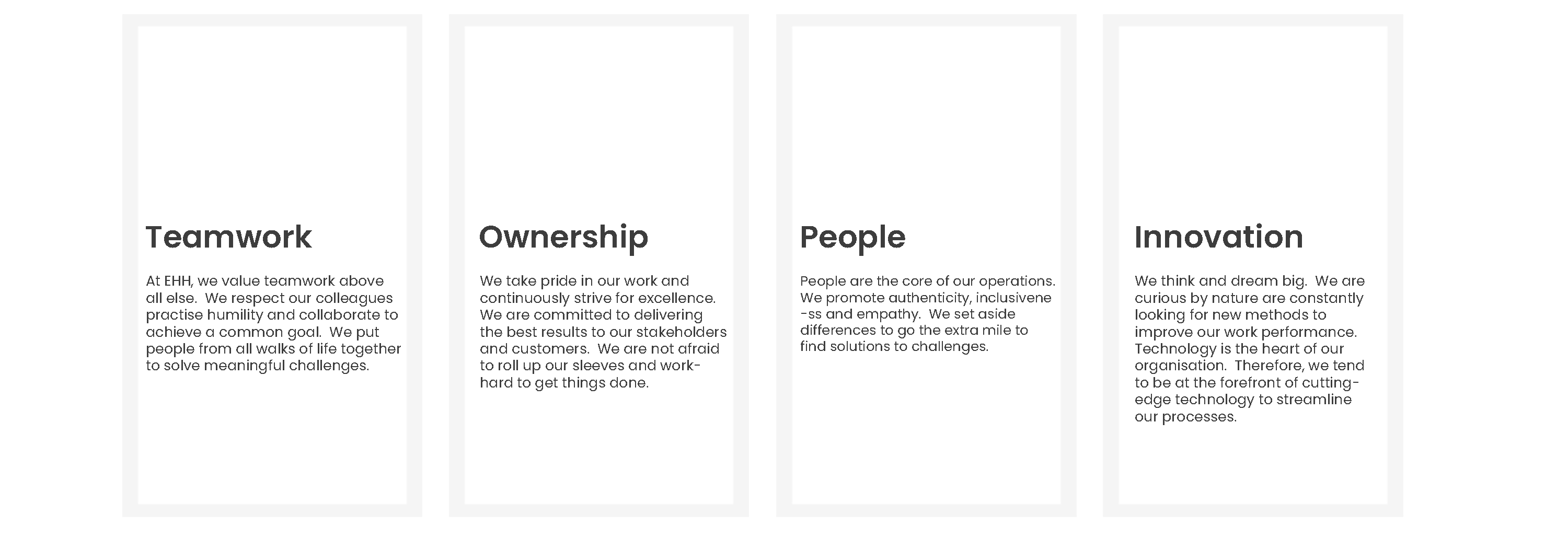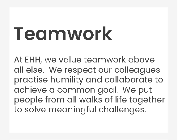 The EHH commitment to the Environment, Social and Governance (ESG) is key to the sustainability of our business. The leadership at EHH acknowledges ESG as a key element and actively ensures that operations across the company capture the aspects of ESG.